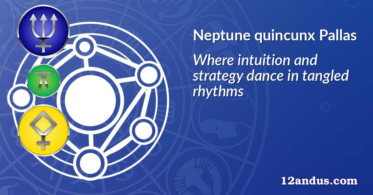 Cuando Neptuno forma un quincuncio con Palas en su carta natal, se encuentra en un mundo donde los sueños y la estrategia deben compartir la misma pista de baile, pero ninguno termina de conocer los pasos del otro. Neptuno, el planeta de la visión, la fantasía y la profunda empatía, siempre está tejiendo nieblas y difuminando límites, mientras Palas busca patrones, soluciones ingeniosas y sabiduría clara. El quincuncio, ese incómodo ángulo de 150 grados, trae una especie de picazón cósmica: justo fuera de alcance pero imposible de ignorar.