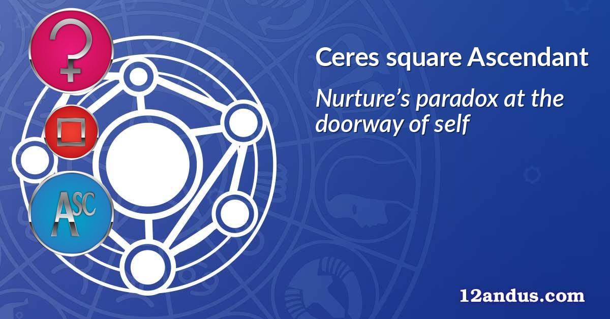 Cuando Ceres forma un aspecto de cuadratura con su Ascendente en la carta natal, se encuentra en una encrucijada intrigante entre el cuidado y la identidad. El Ascendente, su máscara cósmica, es el rostro que muestra al mundo, mientras que Ceres representa los poderosos temas de la nutrición, el cuidado y los ciclos de dar y recibir. Con estas dos energías en conflicto, puede sentirse que expresar su yo auténtico a veces está en desacuerdo con sus necesidades más profundas de confort y realización emocional.