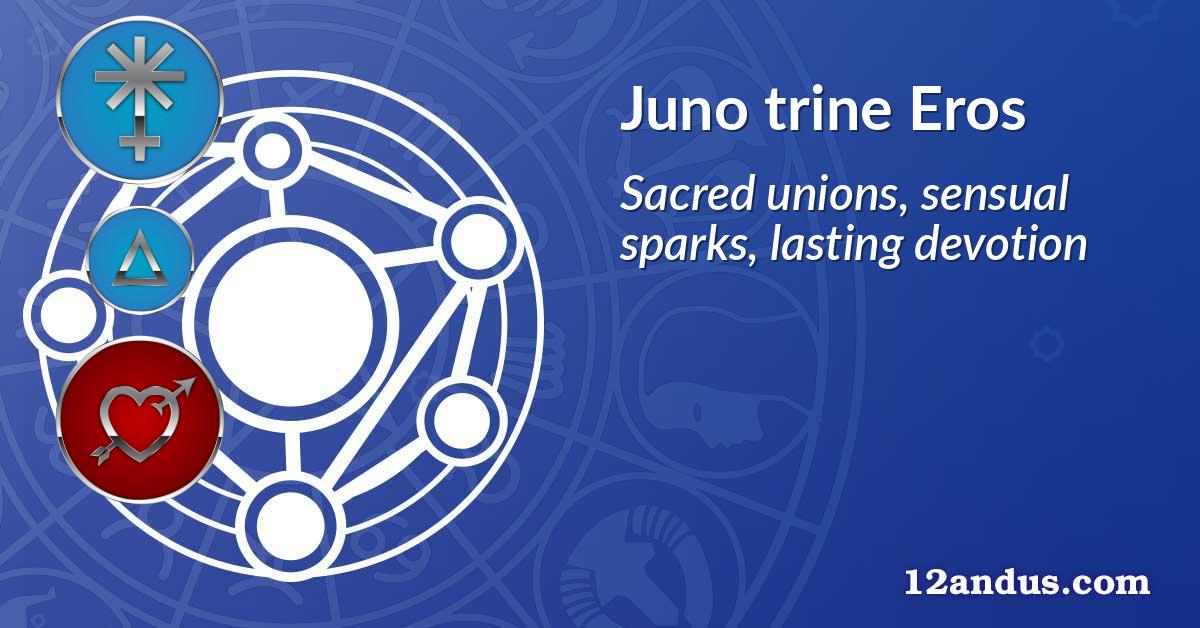 Cuando Juno, el asteroide del compromiso y la asociación sagrada, forma un armonioso trígono con Eros, el asteroide de la pasión y el deseo erótico, algo mágico se despierta dentro de su carta natal. Este aspecto es como tener un casamentero cósmico y una musa trabajando juntos, mezclando el anhelo de una conexión profunda con la emoción del placer sensual. Mientras que algunas personas pueden luchar con la tensión entre la devoción a largo plazo y el deseo puro, se encuentra que estas dos energías pueden bailar hermosamente juntas, cada una realzando a la otra.