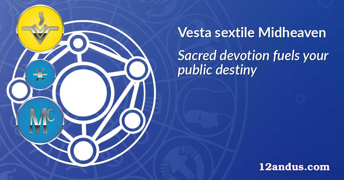 Cuando Vesta forma un sextil con su Medio Cielo en la carta natal, cuenta con un sentido innato de devoción que se entrelaza con gracia con sus ambiciones profesionales y su identidad pública. Vesta, el asteroide del enfoque, el compromiso sagrado y el fuego interior, aporta una energía silenciosa pero poderosa a su esfera profesional. Es como si llevara la llama de una vela por los pasillos de su vida pública, iluminando su camino con propósito e intención inquebrantable.